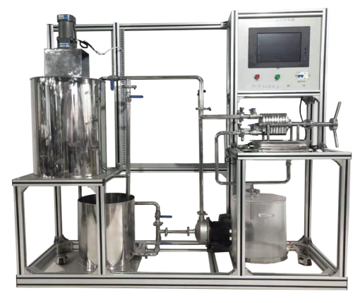 1、304衛生級不銹鋼板框:共4塊框2塊洗滌板3塊非洗滌板,800目工業濾布。 2、304衛生級不銹鋼漿料罐:φ400×600mm,電機拌漿。 3、調速電機:電壓AC220V,功率90W,攪拌器轉速:0-200r/min。 4、304衛生級不銹鋼洗水罐:φ159×500mm,臥式貯罐。 5、濾液量采用稱重傳感器自動測量裝置,在一組實驗中,可自動采樣測量濾液量數據,也可通過計量槽測定,計量槽由有機玻璃制成,容積:約15L,配刻度管,頂部帶蓋。 6、壓力傳感器,測量范圍:0-0.4MPa,精度0.5級,4-20mA遠傳輸出。 7、溫度傳感器:Pt100,分辨率0.1℃,精度0.5%。 8、304不銹鋼離心泵:功率750W,最大流量7.2m3/h。 9、電器:接觸器、開關、漏電保護空氣開關。 10、管路:透明UPVC材質,壁厚2.5mm,耐壓≥0.3MPa。 11、閥門:UPVC球閥和UPVC球閥,耐壓≥0.6MPa。 12、中央處理器:執行速度0.64μs,內存容量16K,功能:數據處理運算。 13、模擬模塊:高達16位分辨率,總和精度±0.5%,內建RS485通訊模式。 14、溫度模塊:分辨率0.1℃,精度0.5%,內建RS485通訊模式。 15、采用一體機平板觸摸電腦,全程數字化觸摸屏控制操作。HMI:投射式觸控技術,5000萬次觸摸點,內存2G,功能:中央處理器數據顯示控制。 16、額定電壓:220V,總功率:1.0KW。 17、外形尺寸:1800×550×1700mm(長×寬×高),外形為可移動式設計,帶剎車輪,高品質鋁合金型材框架,無焊接點,安裝拆卸方便,水平調節支撐型腳輪。 18、工程化標識:包含設備位號、管路流向箭頭及標識、閥門位號等工程化設備理念配套,包含安全警示標識,使學生處于安全的實驗操作環境中,學會工程化管路標識認知,培養學生工程化理念。 |