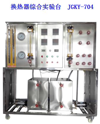鋼原水箱及加熱水箱,順、逆流調節(jié)閥門組,阻力測試壓力表及 U 型差壓計,加熱 功率 由固體調壓模塊無級調節(jié),萬能信號輸入巡檢儀顯示溫度,電流 表, 電壓表, 不銹鋼臺架及控制屏 等 。