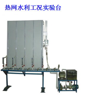 下半部由管道、閥門、流量計、穩壓罐、鍋爐、水泵組成,用來模擬由 5個用戶組成的熱水網路。上半部有高位水箱和安裝在一塊垂直木版上的12根玻璃管,玻璃管的頂端與大氣相通,玻璃管下端用膠管與網路分支點相接,用來測量熱網用戶連接點處的供水干管與回水干管的測壓管水頭(水壓曲線高度)。每組用戶的兩支玻璃管間附有標尺以便直觀的讀出各點壓力。