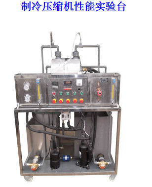 全封閉 制冷壓縮機、冷凝器、節流閥、蒸發器、 冷水泵、熱水泵、玻璃轉子流量計 , 水箱、 電加熱裝置、液體轉子 流量計、 8 路萬能 巡檢儀、溫度傳感器、高低壓控制器、干燥過濾器、儲液罐、電流表、電壓表、壓力表 、不銹鋼 移動式實驗臺等組成 。