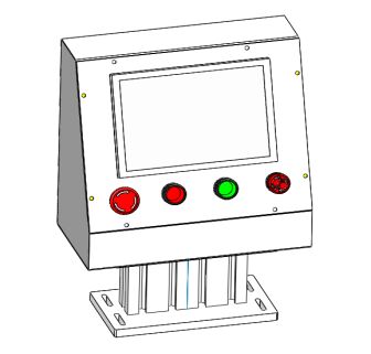 功能:由觸摸屏及按鈕指示燈組成,對整套系統進行控制及指示作用。人機界面觸摸屏 1 臺、按鈕 4 只,及配備機構安裝支架。 |
