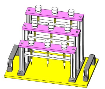 功能:立柜式倉庫模塊可為碼垛模塊、裝配模塊成品工件或其他模塊工件提供放置空間。 主要由移動式底板,安裝支架等組成。 |