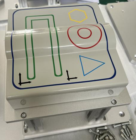 3 運動軌跡模塊: TCP 練習區主要作為工業機器人的基礎學習環節,能動態直觀的體現出 TCP 示教的重要性和示教的精度,能夠自由更換示教尖端;可實現 TCP 標定練習,提供 TCP 標定用錐形教學塊;可實現基本軌跡編程練習,提供三角形、方形教學軌跡;可實現復雜軌跡編程練習,提供曲線教學軌跡;