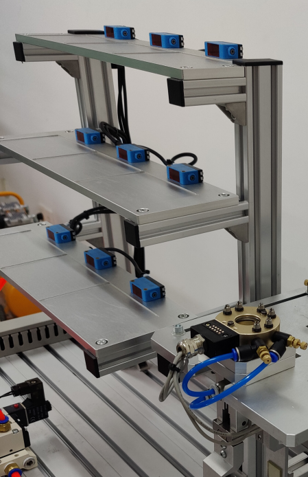 4 流水線模塊:流水線應用場景與工廠實際物流情況相似,可進行機器人點位示教編程與調試,可根據學習內容不同而設置不同挑選形式,可根據工件不同采用不同的夾取夾具