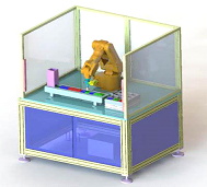 由工件存儲盒托盤及型材立柱組成,安裝在型材實訓桌上,用于裝配工件。工件盒內設有4個工件槽用于放置工件,機器人可以根據不同配方按照上位機設定顏色進行放置工件。