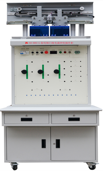 JG-889-G 型電梯門繼電器控制操作柜由實訓桌和實訓臺兩部份組成。