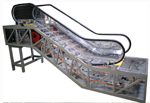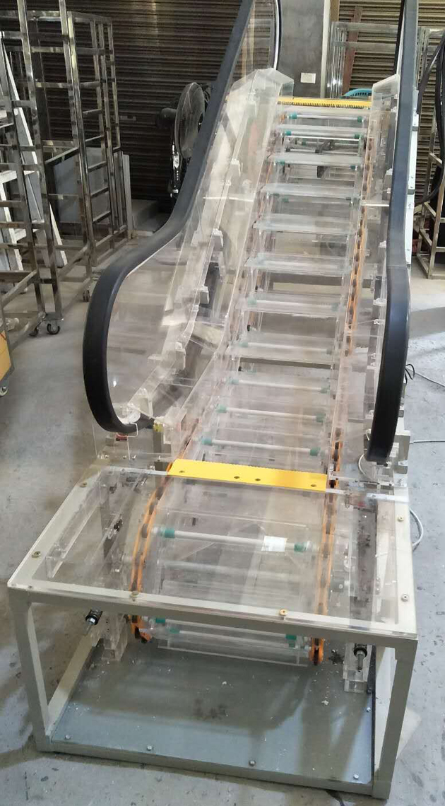 透明教學自動扶梯模型,適用于職業院校、中職院校電梯技術專業學員進行自動扶梯梯級拆裝、操縱和維修保養實訓教學訓練。扶梯模擬實訓裝置采用優質方管焊接密紋噴塑組裝成扶梯桁架,梯級踏板系統、扶手帶系統、曳引機系統,設備臺架、安全檢測系統,電氣控制控制系統等。