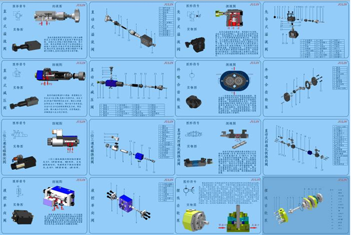 5、軟件: 智能化數據采集液壓實驗臺 智能型液壓綜合實驗裝置配有 3 套軟件,分別為: 1 套數據采集系統軟件、和 1 套液壓仿真教學軟件、 1 套組態液壓回路通訊控制軟件;