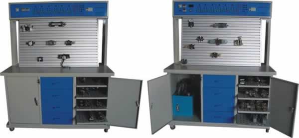 其基本配置為一個(gè)實(shí)驗(yàn)臺(tái)配有一套氣動(dòng)控制實(shí)驗(yàn)元件和一套液壓控制實(shí)驗(yàn)元件,且各自配有獨(dú)立的一套電氣控制實(shí)驗(yàn)設(shè)備。