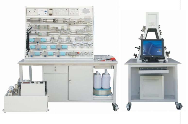 氣動實驗與液壓實驗電氣主控單元配備2套PLC可編程序控制器控制,可與PC微機通訊實現微機智能控制。同時,以氣動及液壓回路為控制對象,加強對PLC可編程序控制器的學習及應用。