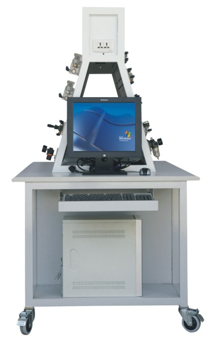 本實驗設備采用了多功能一體化鋼桌結構,整體焊接,表面噴塑,堅固耐用。鋼桌采用了雙面對稱結構,設計有元件存儲柜,工具資料抽屜,氣泵架位,電腦架位,可以附配電腦鍵盤抽屜。實驗臺采用了梯形雙立面結構,上面有氣動元件回路安裝區,電器控制模塊安裝區。合理的實現了空間與功能的自由組合。它可以針對客戶的不同需求實行不同的配置,以及為今后的升級擴展提供了平臺。