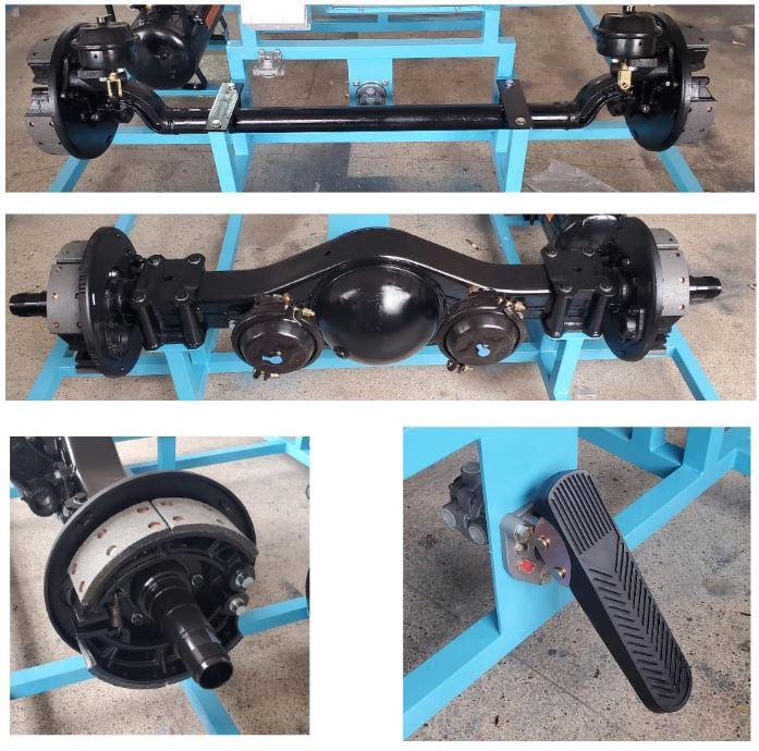 采用貨車氣壓制動系統(tǒng)的所有配件,增加完整的前橋,后橋