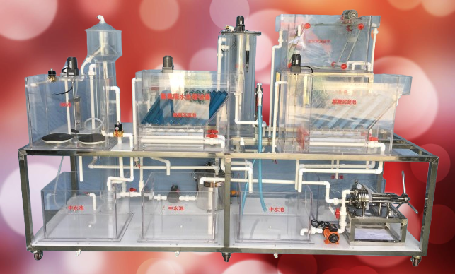 觸摸屏控制、也可以手動(dòng)、在線監(jiān)測(cè)儀( PH 儀和 DO 儀),監(jiān)控等組成,供水系統(tǒng):主要由水箱、不銹鋼支架、水箱液位管和球鬧等組成。污水處理系統(tǒng):裝置對(duì)象設(shè)備整體采用不銹鋼框架進(jìn)行設(shè)計(jì),主要?jiǎng)恿ο到y(tǒng)器件安裝在鋼架上,主要有機(jī)玻璃反應(yīng)器合理的布置安裝在不銹鋼鋼架的上層。下層動(dòng)力系統(tǒng)主要由水泵、風(fēng)機(jī)、中水池裝置等組成。有機(jī)玻璃反應(yīng)器系統(tǒng)主要由有機(jī)玻璃平流式沉淀池、 CSTR 池、輻流式沉淀池、 UASB 池、 SBR 池、絮凝沉淀池、消毒池、固液分離機(jī)、有機(jī)玻璃中和池等組成。曝氣系統(tǒng)主要由風(fēng)機(jī)、曝氣管、攪拌機(jī)、流量計(jì)和管道等組成,在線監(jiān)測(cè)系統(tǒng)主要由 DO 在線儀、 PH 在線儀、浮球液位開(kāi)關(guān)等組成。