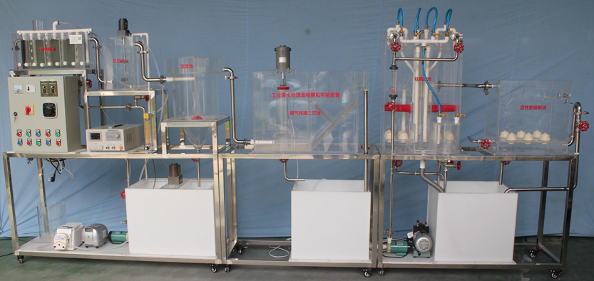 為了了解工業廢水中常用的單元操作技術,掌握由這些單元操作組成的處理流程,觀察廢水、污泥和空氣在處理過程中的舉動,特別為水處理專業科研及教學研制的實驗裝置 。整套裝置由可編程序控制器對其廢水的流入、加藥混凝、曝氣、反沖洗、排放、排泥等進行自動控制。對其每一段的水處理效果進行監測,整套設備連接使用、也可分開單獨使用、每一個污水池都有開發取樣口。