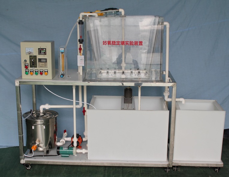 好氧穩定塘實驗裝置是一種用于模擬和研究好氧穩定塘污水處理過程的實驗設備。它通過模擬自然水體的自凈過程,利用微生物降解有機污染物,從而達到凈化污水的目的 , 好氧穩定塘實驗裝置的工作原理 1. 塘水的稀釋作用:污水進入穩定塘后,與塘內已有的水進行混合,降低污染物的濃度。 2. 沉淀和絮凝作用:懸浮物質在重力作用下沉于塘底,降低 SS 、 COD 等指標。 3. 好氧生物的代謝作用:在好氧條件下,好氧菌和兼性菌降解有機污染物,去除 BOD 和 COD 。 4. 厭氧生物的代謝作用:在厭氧環境中,厭氧菌對有機物進行降解。 5. 浮游生物的作用:藻類提供溶解氧,原生動物、后生動物等生物絮凝和凈化水質。 6. 水生維管束植物的作用:吸收氮、磷等營養元素,提供溶解氧 , 好氧穩定塘實驗裝置的應用 ? 教學和研究:用于環境工程、給排水工程等相關專業的實驗教學和研究。 ? 污水處理:模擬實際污水處理過程,優化處理工藝參數。 ? 環保宣傳:通過實驗裝置展示污水處理過程,提高公眾環保意識 , 好氧穩定塘實驗裝置通過模擬自然水體的自凈過程,利用微生物降解有機污染物,從而達到凈化污水的目的。它具有結構簡單、能耗低、環保等優點,廣泛應用于教學、研究和污水處理等領域