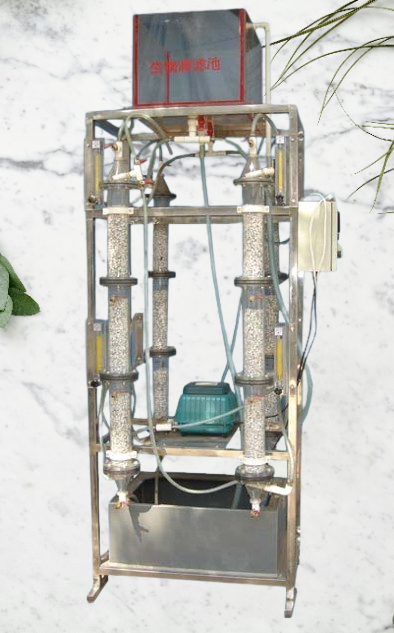3 、配 原水箱攪拌電機 1 臺 、 304 不銹鋼攪拌槳 1 套;(功率 1 5W 、轉速 12 0rpm )、 (含調速器 1 只)、 4 、生物曝氣濾池 1 套(附 ?10 圓陶瓷環填料)、 透明有機玻璃材質、壁厚 10 mm 、 ? 10 0× 150 0mm 、、 帶 微 孔 曝氣 裝置