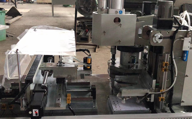 實訓裝置主要功能是根據要求完成對被加工物料的自動上下料及多模具精確冷沖壓過程;首先通過電氣控制柜中的觸摸屏、 PLC 、傳感器等控制兩伺服電機的旋轉來控制二維送料部件(十字滑臺)運動,二維送料部件(十字滑臺)與自動上下料機構(倉庫)配合實現被加工物料(鋁板)的自動上料、自動送料、自動定位和自動下料功能;其次根據加工要求通過步進電機的轉動完成轉塔部件中多形狀沖壓模具的更換動作,并通過氣動定位系統對轉塔進行精確定位;最后利用沖壓系統以及冷沖壓模具的聯合動作對物料進行精密沖壓。