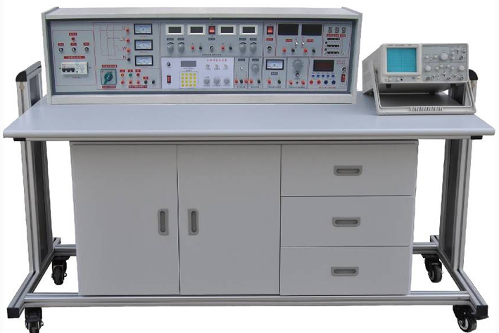 電工、模電、數電實驗臺具有較完善的安全保護措施,較齊全的功能。實驗操作桌中央配有通用電路插扳,電路板由 ABS 注塑而成,背面裝有壓鑄而成九孔成一組的銅片,表面布有九孔成一組相互聯通的插孔,創新實驗元件模塊在其上任意拼插成實驗電路。實驗元件制成透明創新模塊,直觀性好,盒蓋印有元件符號,線條清晰美觀。盒體與盒蓋采用較科學的壓卡式結構,維修、更換元件拆裝方便。元器件放置在實驗操作桌下邊左右柜內,實驗時取存方便,大大提高了管理水平,規劃化程度,大大減輕了教師實驗準備工作。