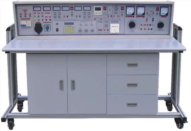3、示教控制臺(tái): 1臺(tái)示教控制臺(tái),分別控制12臺(tái)學(xué)生臺(tái)的電源,通用電路板演示屏立在實(shí)驗(yàn)臺(tái)上,尺寸150cm×70cm,用于講解、演示。
