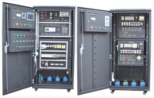 電氣控制技術(shù)實訓考核裝置。是由實訓柜體、門板電氣控制元件(組件)、儀表等,實訓考核單元掛板、典型機床電路掛板、電機單元、運動單元、溫度控制組件、網(wǎng)孔掛板等組成。其外觀如圖所示。