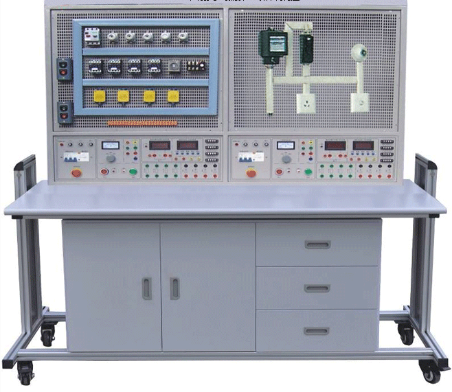 6、實訓桌為鐵質雙層亞光密紋噴塑結構,桌面為防火、防水、耐磨高密度板。配有抽屜和元器件儲存柜。