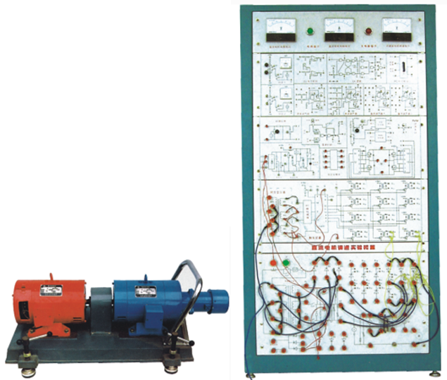 直流電動機運動控制實驗裝置采用立式機柜,機柜內采用模塊化設計,功能分隔清晰,強弱電隔離,維護檢修方便。直流電動機—直流發電機機組額定功率為1.5KW(采用晶閘管可控整流調壓調速)。副直流電動機機組額定功率300W(采用H橋VDMOS管PWM調壓調速)。設有計算機控制接口,PC機或單片機可進行數字調節器控制或全數字式直流電動機控制系統實驗。
