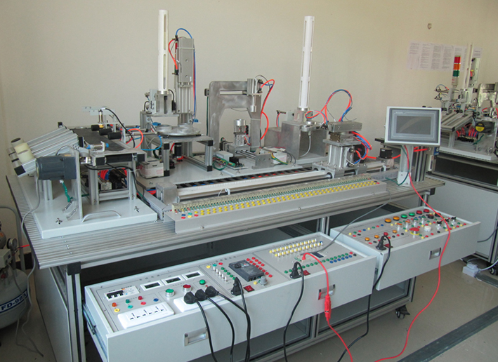 光機電一體化控制實訓裝置由由鋁合金導軌式實訓臺、典型的機電一體化設備的機械部件、 PLC 模塊、變頻器模塊、按鈕模塊、電源模塊、模擬生產設備實訓模塊、接線端子排和各種傳感器、計算機等組成。整體結構采用開放式和拆裝式,實訓裝置用于機械部件組裝,可根據現有的機械部件組裝生產設備,也可添加機械部件組裝其他生產設備,使整個裝置能夠靈活的按教學或競賽要求組裝具有生產功能的機電一體化設備。模塊采用標準結構和抽屜式模塊放置架,互換性強;按具有生產性功能和整合學習功能的原則確定模塊內容,使教學或競賽時可方便的選擇需要的模塊。設備需完全符合電工電子全國職業技能大賽所要求,同時還要求具有可拓展功能,可以組成更加大型的生產模擬系統,以配合各個用戶學校不同層次,不同專業的教學及培訓要求。