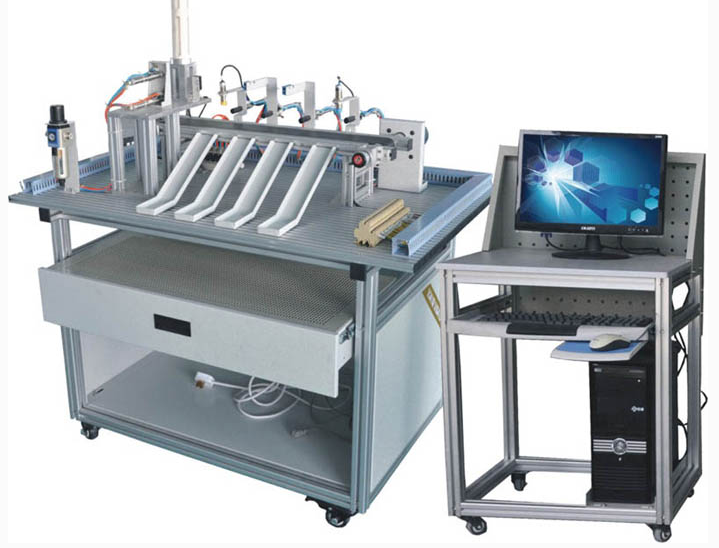 材料分揀實訓裝置是針對機電一體化教學的要求而研發的,它涵蓋了 PLC 、氣動控制、電機傳動、電磁鐵控制、位置控制、傳感器檢測等教學內容,是實際工業現場生產設備的微縮裝置。基于多種傳感器的檢測及旋轉編碼器的精確定位,實現對不同材質、不同顏色物體的分揀。裝置采用全開放式布局且具有設故排故單元,可充分鍛煉操作者系統接線、機械調試安裝、軟件編程、獨立構建控制系統、反饋整定、故障檢測及檢修的能力。適合于自動化、電氣自動化、電氣工程等專業的《運動控制》、《氣壓系統》、《機電一體化技術》、《檢測與轉換技術》、《可編程控制技術》等課程開設實訓課。
