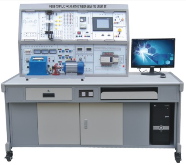 實訓裝置由控制屏、實訓桌、主機實訓組件、實訓模塊(含豐富的工業現場設備模擬實訓對象)、變頻器掛箱、觸摸屏掛箱、交直流電機、總線單元、通信模塊、電機導軌、測速機構等組成。