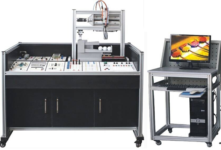 單片機技術應用實訓考核裝置,單片機功能控制實訓考核平臺學生通過在該實訓室訓練,了解CPU硬件結構特點,熟練掌握單片機的編程設計方法,培養學生應用單片機的開發設計能力。采用烤漆鋼板制作的臺式結構。單片機實訓臺的抽屜柜用于存放實訓模塊,抽屜柜與臺面之間布置實訓模塊安裝支架,最上一層是工作臺臺面。用于技能競賽時在臺面上放置設備安裝底板,在底板上安裝試題擬定的單片機控制裝置需要的模塊,連接控制電路,編寫的控制程序輸入單片機后,按下運行指令開關,單片機控制裝置就按程序運行。放置在單片機實訓室中,這就是一張實訓臺。當講解理論或實訓項目中的相關知識時,可以當做課桌;當需要進行實際操作時,將臺面打開,就露出放置在安裝支架上的模塊,在需要的實訓模塊間按實訓要求連接電路,編寫控制程序,就可以按照設計的實訓項目進行單片機技術的教學了,同時還能完成智能物料搬運裝置的提升實訓。