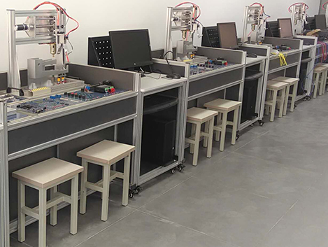 單片機控制功能實訓(xùn)考核裝置采用烤漆鋼板制作的臺式結(jié)構(gòu)。實訓(xùn)臺的抽屜柜用于存放實訓(xùn)模塊,抽屜柜與臺面之間布置實訓(xùn)模塊安裝支架,最上一層是工作臺臺面。用于技能競賽時在臺面上放置設(shè)備安裝底板,在底板上安裝試題擬定的單片機控制裝置需要的模塊,連接控制電路,編寫的控制程序輸入單片機后,按下運行指令開關(guān),單片機控制裝置就按程序運行。