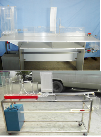 主要配置:儲水箱; 上水管;溢流管;整流柵;溢流板;溢流箱;畢托管;差壓計;閥門 測壓計;調節閥;回水箱;計量箱;回水管 ;移動式不銹鋼實驗臺。
