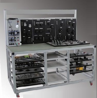 機械系統綜合實訓裝置 由通用工作臺及面板支架、由工業鋁型材組成的使用T型槽螺母進行安裝的安裝件以及各實訓模塊組成,各實訓模塊不用時可存放到通用工作臺中,使用時取出進行裝配調整,使用方便,配置靈活,能滿足不同階段學生教學實訓任務的需要。