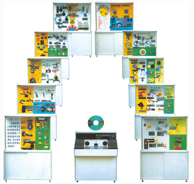 機(jī)械原理》展示柜是根據(jù)大、中專(zhuān)院校、枝校、職業(yè)學(xué)校的機(jī)械原理教學(xué)大綱設(shè)計(jì)的電化教學(xué)設(shè)備。本套展示柜共分十個(gè)柜。