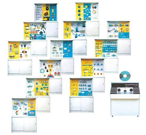 機械設計基礎陳列柜.機械陳列柜.機械基礎陳列柜 根據全國技工學校機械類通用教材設計開發的《機械設計基礎》示教陳列柜是一套電化教學設備。本陳列柜共分十三個柜和一個電腦控制臺,聲控同步演示,采用單獨驅動由電腦或電子設備控制運轉嚴演示,可由 DVD 控制順序自動運行講解,又能根據教材、教學需要而遙控任意選擇還是單獨演示。模型材料采用進口有機板制造,板面附有高級寫真作必要的圖表和文字說明,演示形象逼真,運行可靠。是一套現代化機械課程教學設備。