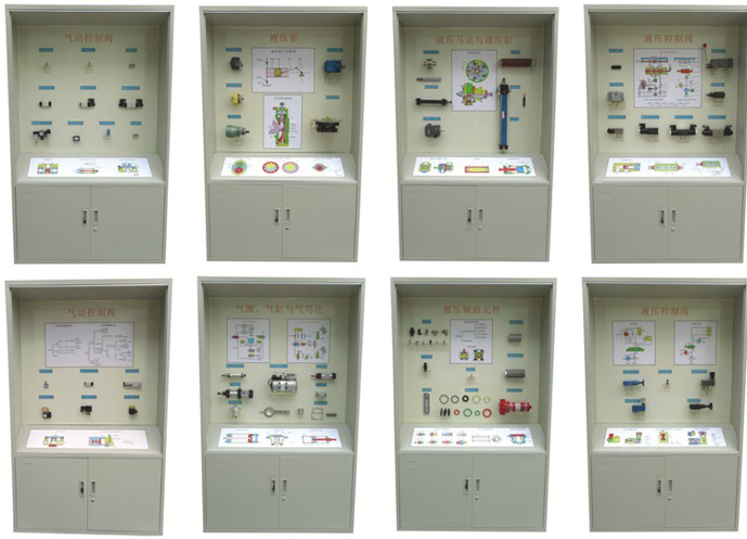 采用實物或模型以及必要的圖文資料展示常見液壓、氣動元件的基本類型與基本結構。