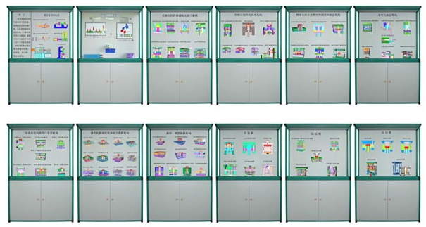 《塑料模具設計與制造》陳列柜各柜內容如下: