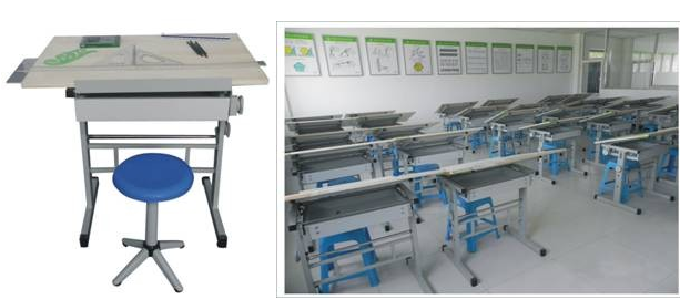 多功能實用繪圖桌 升降繪圖桌支架采用鋼架結構,桌面板采用東北優質加厚椴木材料的1號繪圖板,并可調節傾角0°-85°,桌面下部有儲物隔板,可以放置書包、文具和圖紙等物品,牢固耐用,適用于機械制圖繪圖和繪畫專業,在院校內實用和經濟的一款多功能和升降繪圖繪畫桌,有較強的多種行業和課程的兼容性和普及性。