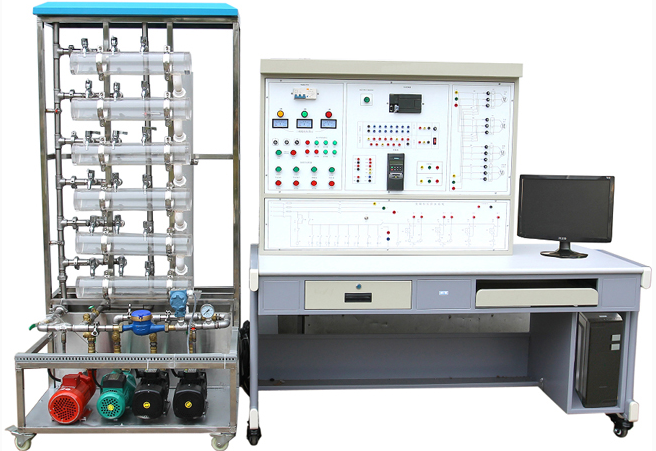 “變頻恒壓供水系統實訓裝置”采集 PLC 、變頻調速、過程控制、工程組態技術于一體。它是由控制平臺和六層住宅消防、生活供水系統(實物模型)兩大部分組成,包含了西門子 PLC 、西門子變頻器、變頻磁力驅動泵、休眠泵、消防泵、壓力變送器、壓力儀表、輸水管道、消防栓、家用水龍頭、蓄水池等工程設備。控制平臺采用 PLC+ 變頻器的開放式控制結構,可以完成多種模式下的樓層恒壓供水實訓,為研究變頻恒壓供水技術提供了一個開放的操作平臺。它是一款適用于高等院校電氣自動化、樓宇自動化、建筑電氣、智能建筑等專業的綜合型實訓設備。